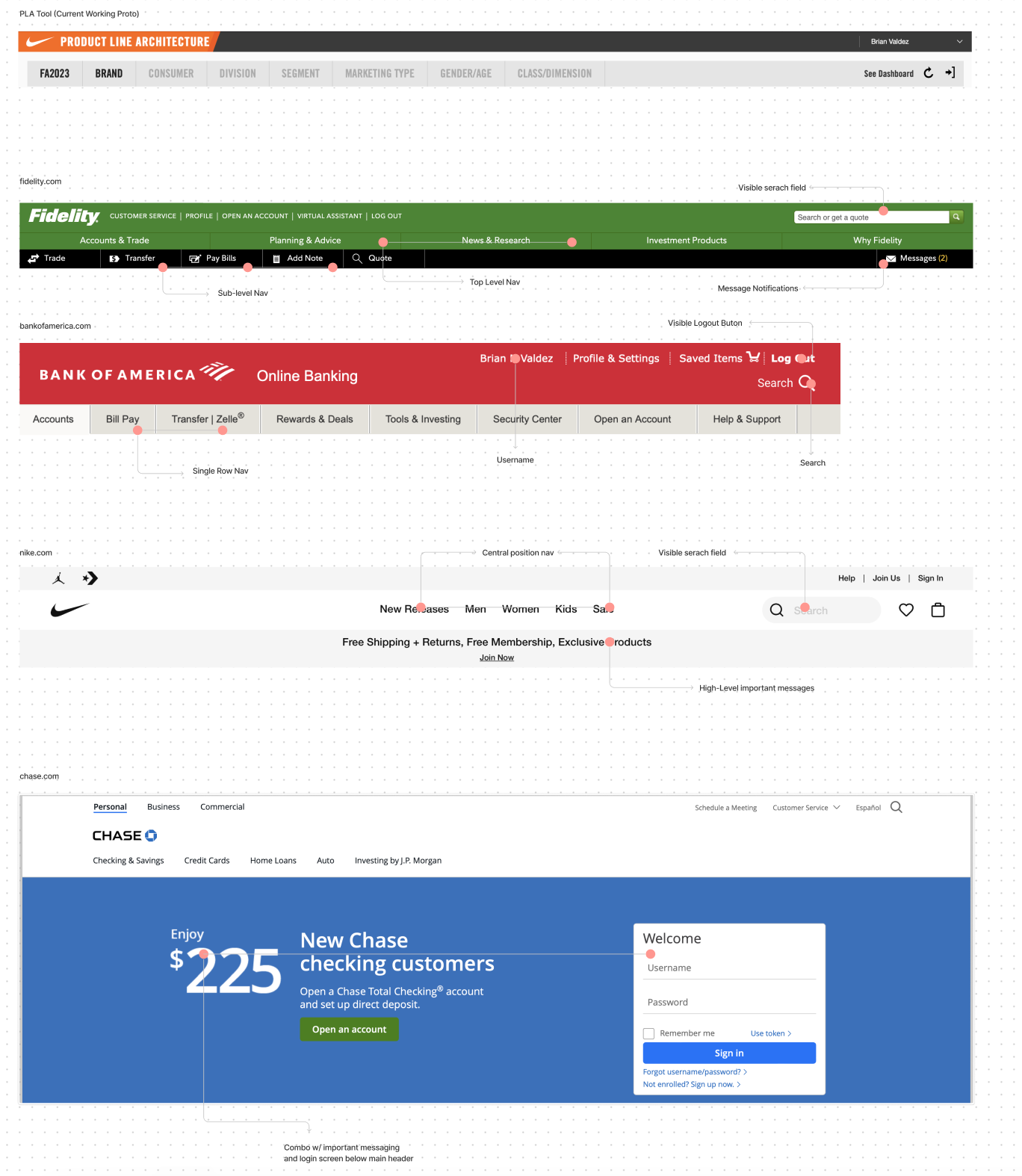 Our team took a different approach from traditional UX Design practices as Product Line Architecture was still being defined for our users. We started by designing and comparing desktop headers to establish a navigational system for our users.